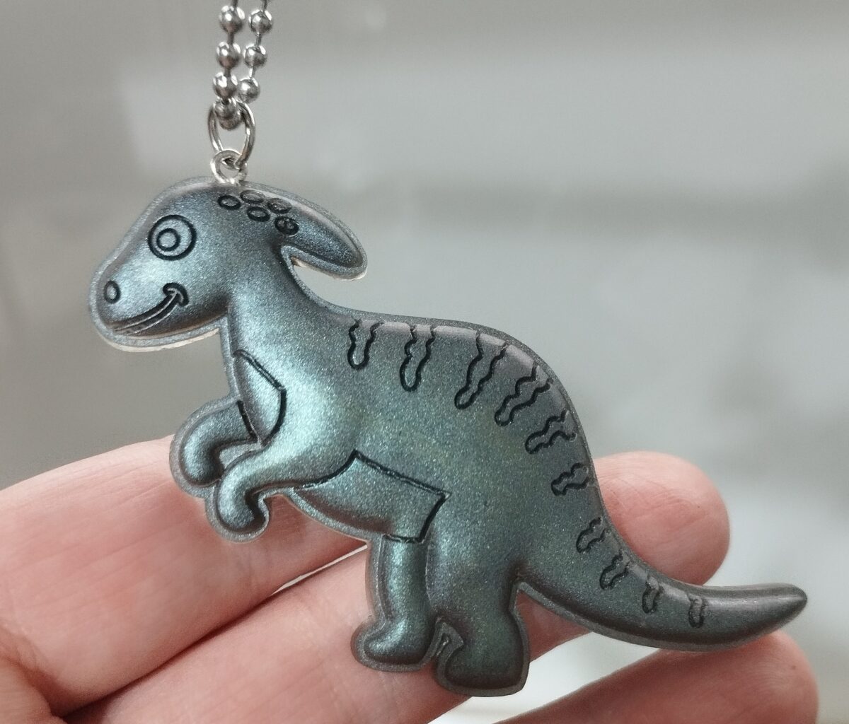 Aranyos dínó dísz/kulcstartó műgyantából. 8 cm hosszú a fejétől a farka végéig.