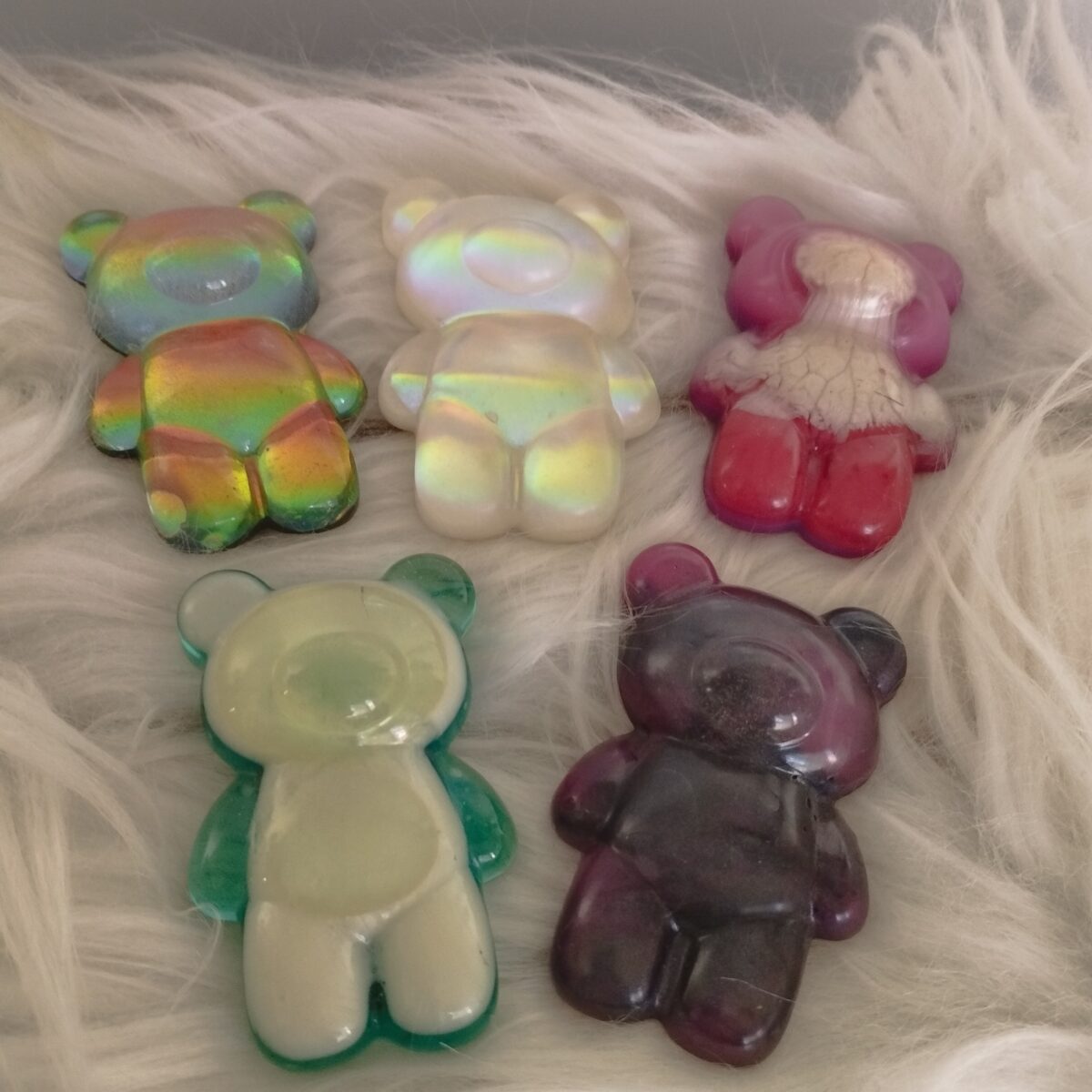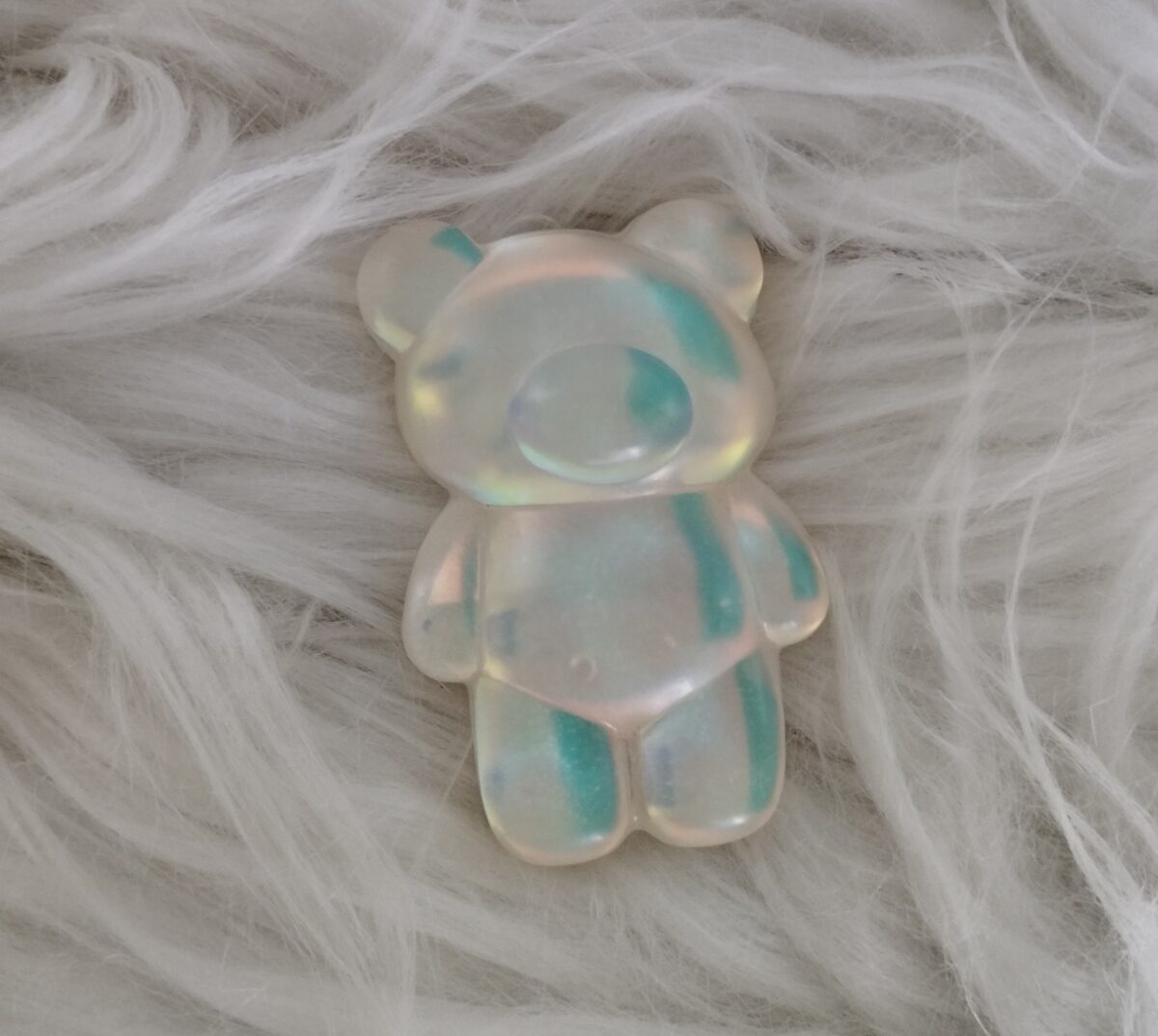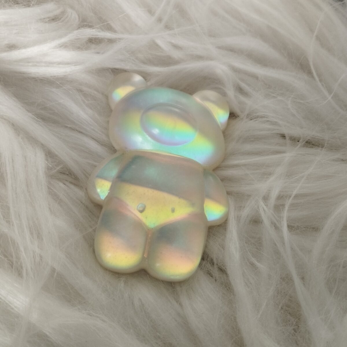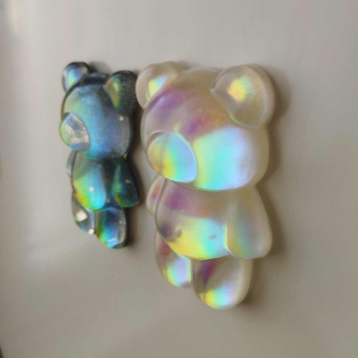 Sötét vagy világos színjátszós mackó mágnes / hűtőmágnes. Gyönyörű színekben fénylik, attól függően, hogy esik rá a fény. Hátulján mágnescsík, a maci mérete 6,6×4,1 cm.